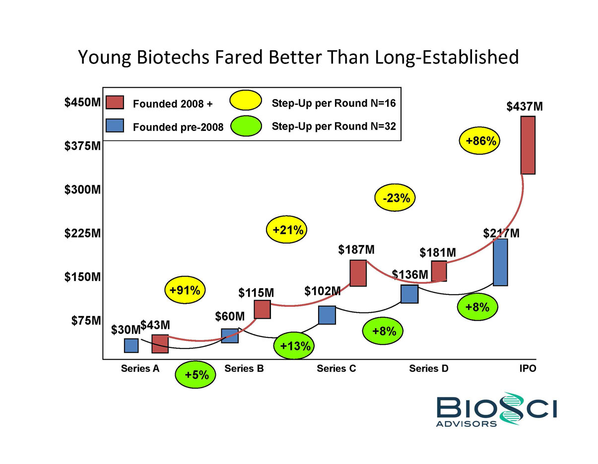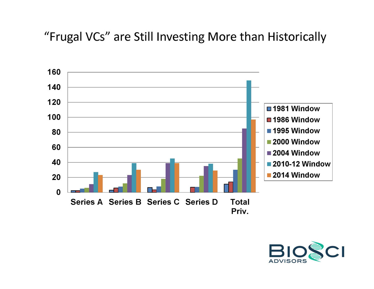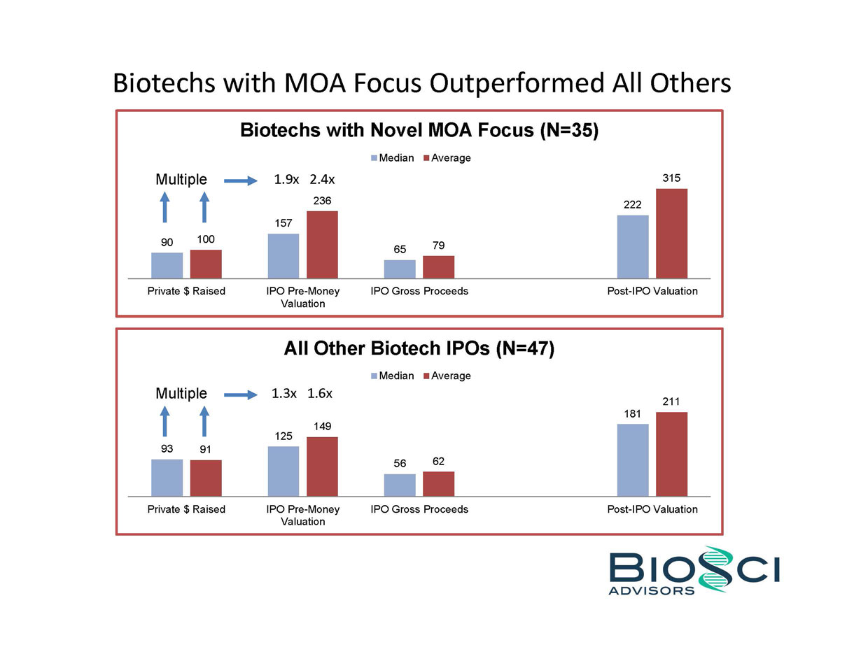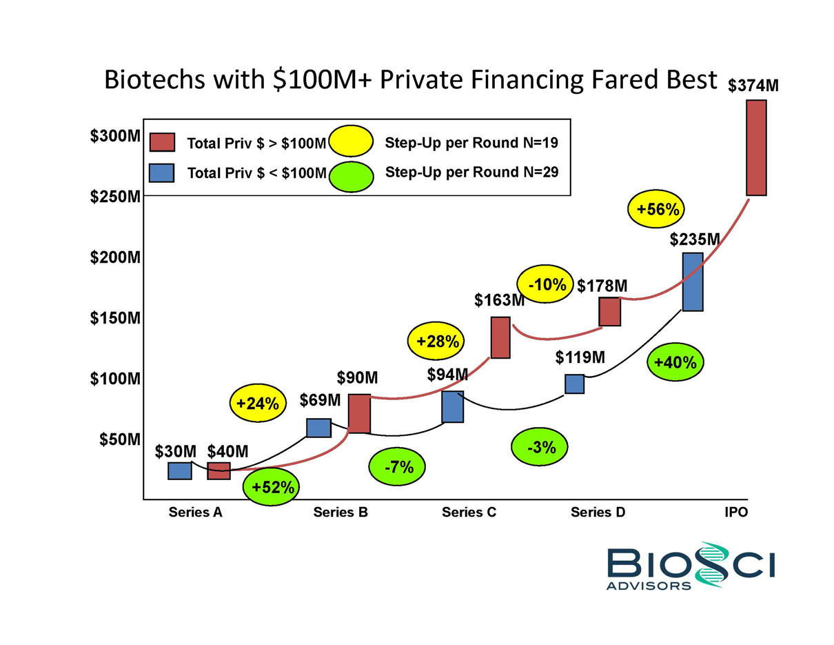 2014 was THE year of the biotech IPO. 82 companies raised an aggregate of $5.7 billion in US IPO proceeds, eclipsing the $2.7 billion raised in 2013, and even topping the previous industry high of $4.8 billion raised in 2000. But below the headlines, the “Class of 2014” was a study in contrasts – for example, 24 of these biotechs were seven years or less from founding to IPO, while the same number were 14 years or older. BioSci has analyzed the Class of 2014 by several of these contrasting attributes, including venture capital raised in pre-IPO financings. We also review recent trends in “Big Ticket” alliances.