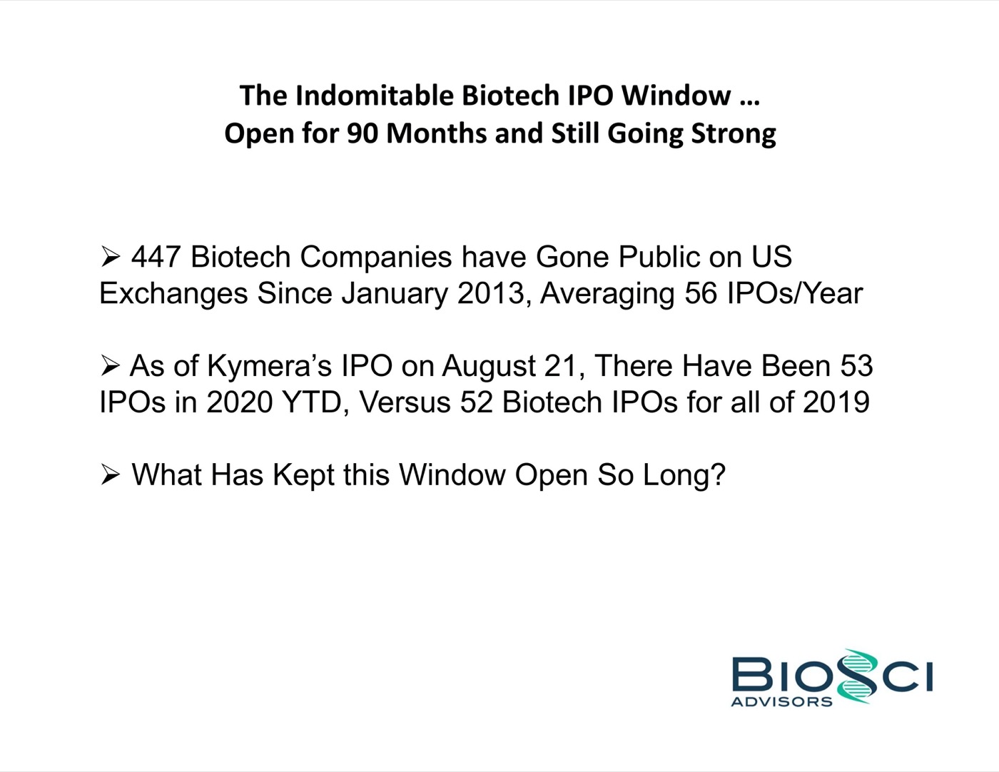 There’s a longstanding adage in the biopharma industry that biotech initial public offering (IPO) windows creak open but slam shut. After seven years of capital markets being receptive to biotech public financings, one might have predicted that the industry’s IPO window would be a casualty of the Covid-19 pandemic. Way wrong!