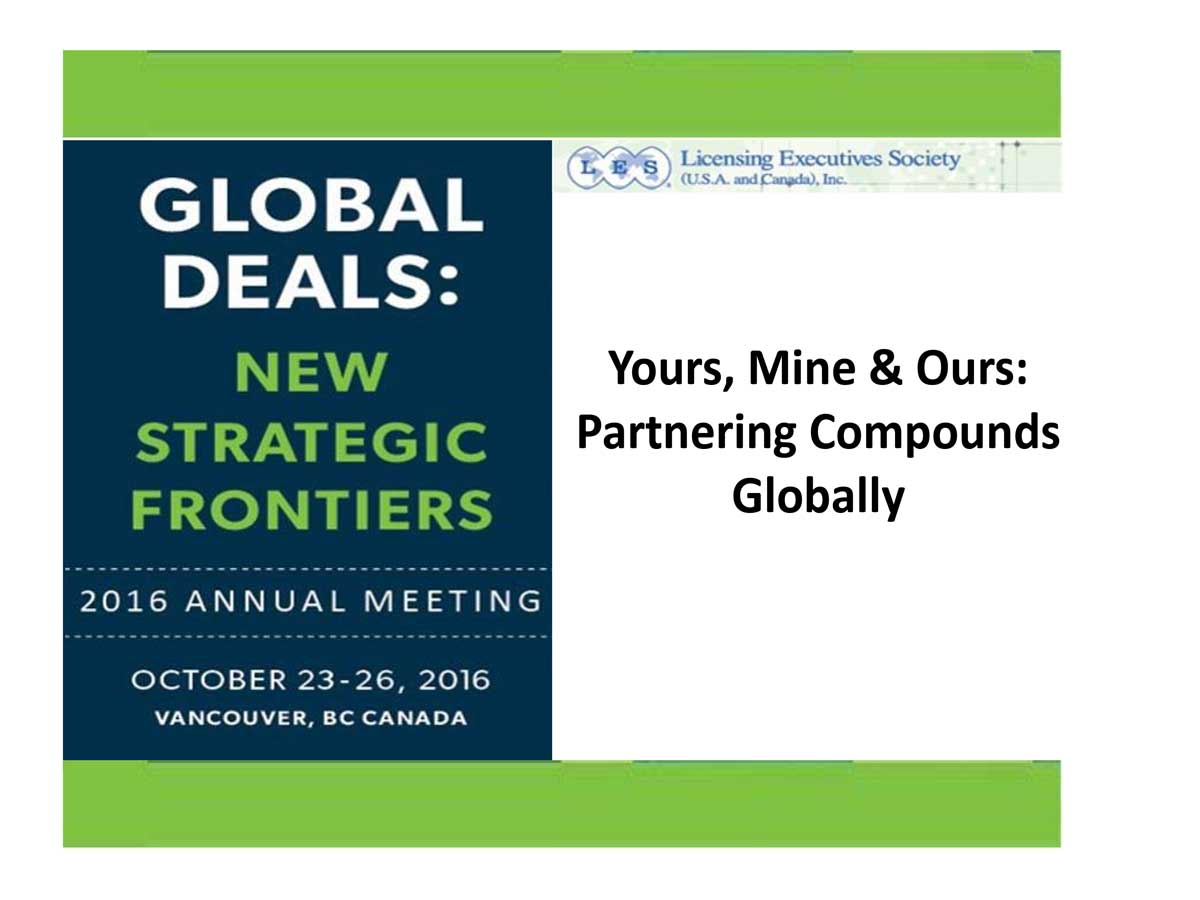 The theme of the 2016 national meeting of the Licensing Executive Society was “Global Deals: New Strategic Frontiers.” This seems especially appropriate for the biopharma industry, whose ambitions have long been global in scope, but whose constraints of budget and project prioritization have often led to regional and niche alliance strategies.
